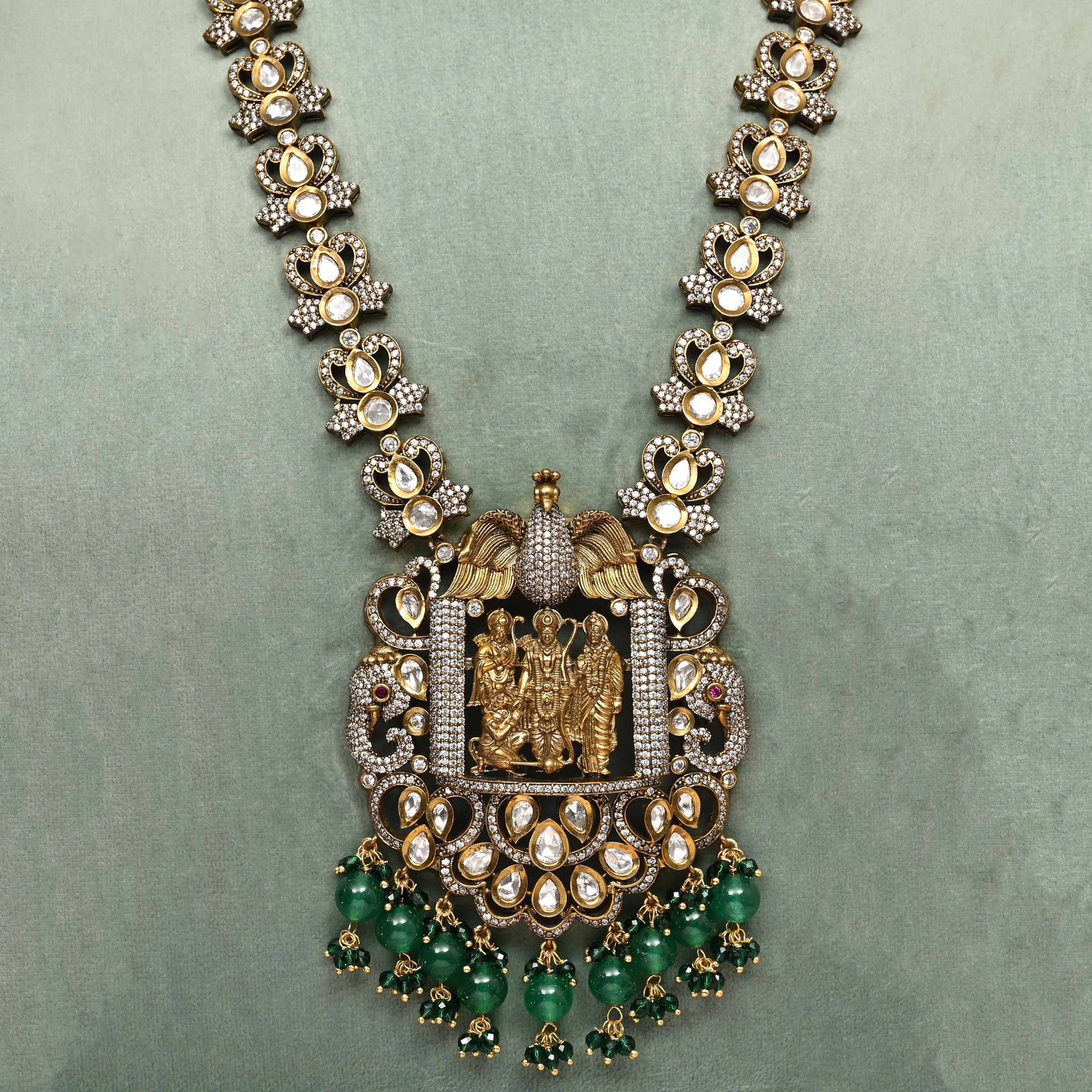 This Victorian necklace set showcases expert craftsmanship with its unique, one-of-a-kind design. Featuring real cubic zirconia and moissanite stones, it offers the brilliance and sparkle of genuine diamonds. Delicately accented with dangling pearls, this handcrafted piece combines timeless elegance with exceptional quality, making it a distinguished addition to any fine jewelry collection.