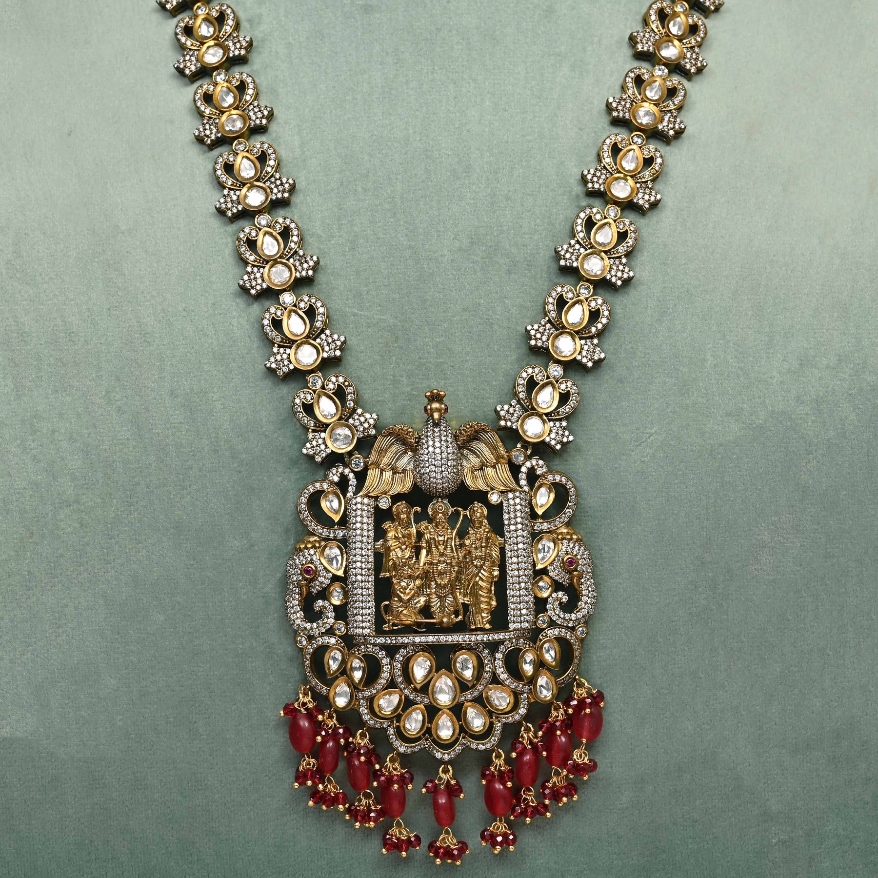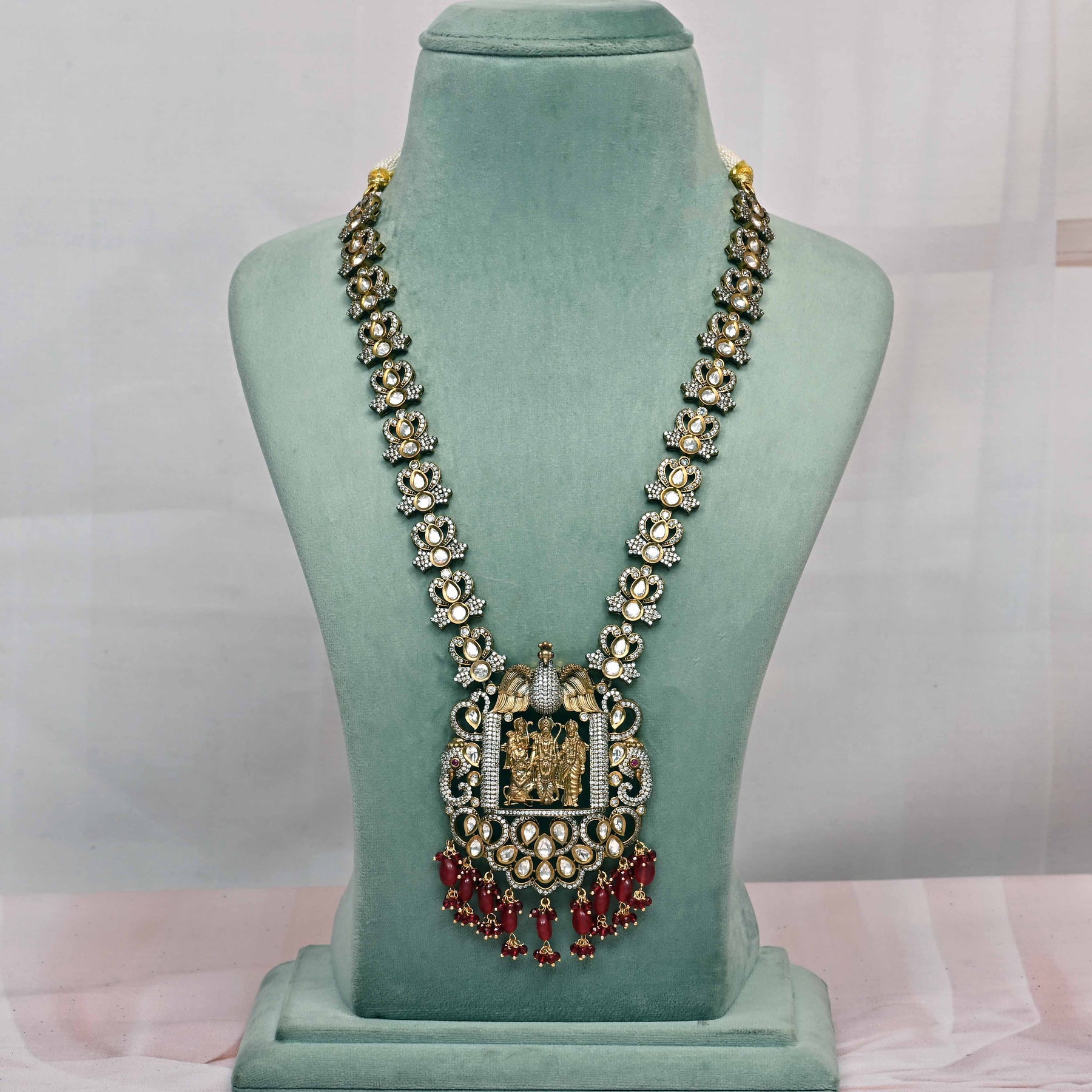 This Victorian necklace set showcases expert craftsmanship with a unique, one-of-a-kind design. Featuring real cubic zirconia and moissanite stones, it offers the brilliance and sparkle of genuine diamonds. Delicately accented with dangling pearls, this handcrafted piece combines timeless elegance with exceptional detail, making it a distinguished addition to any fine jewelry collection.