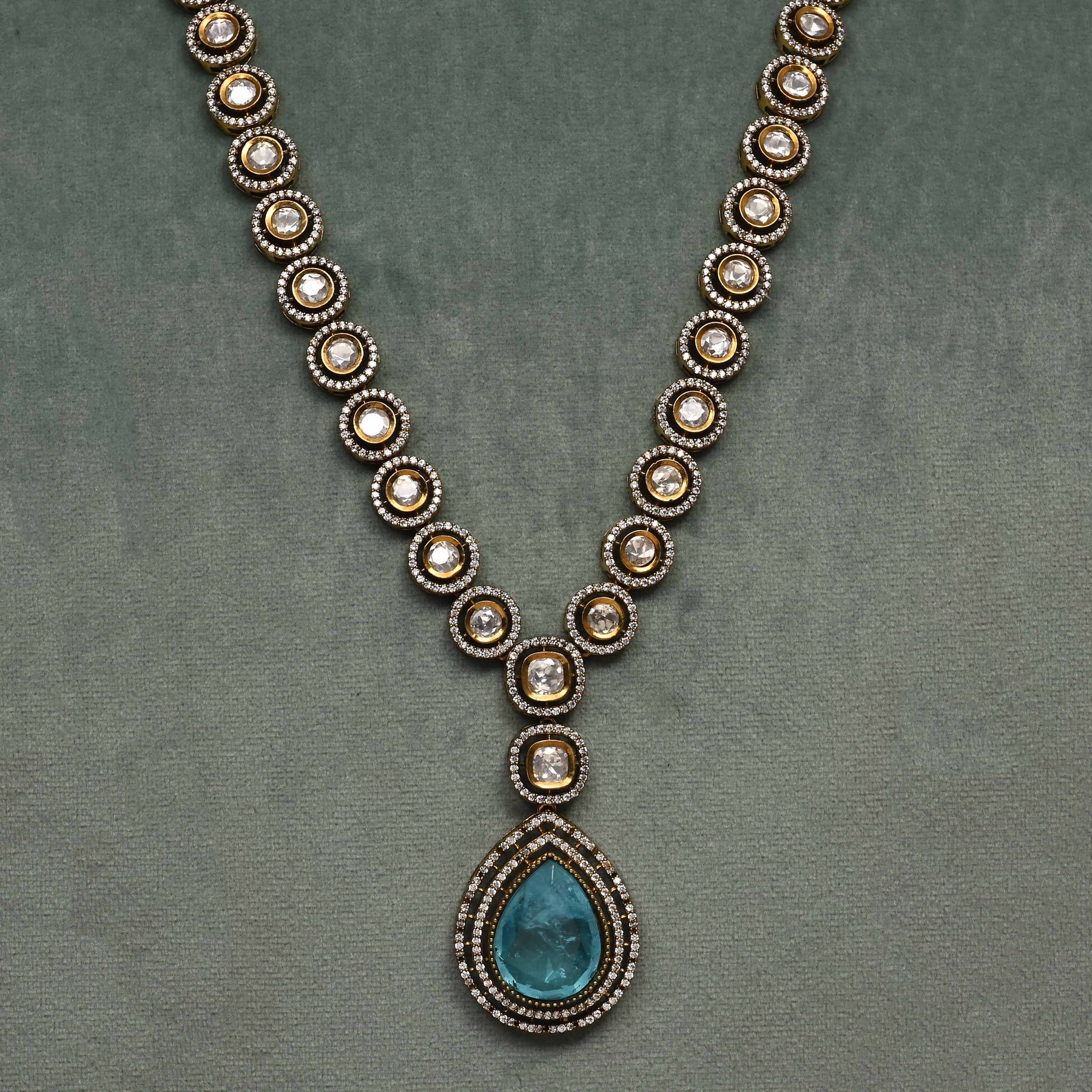 This Victorian Necklace Set showcases exquisite craftsmanship with a unique, one-of-a-kind design. Featuring real CZ and moissanite stones, it offers the brilliance and sparkle of genuine diamonds. Delicately accented with dangling pearls, this handcrafted piece combines timeless elegance with superior quality, making it a standout addition to any fine jewellery collection.