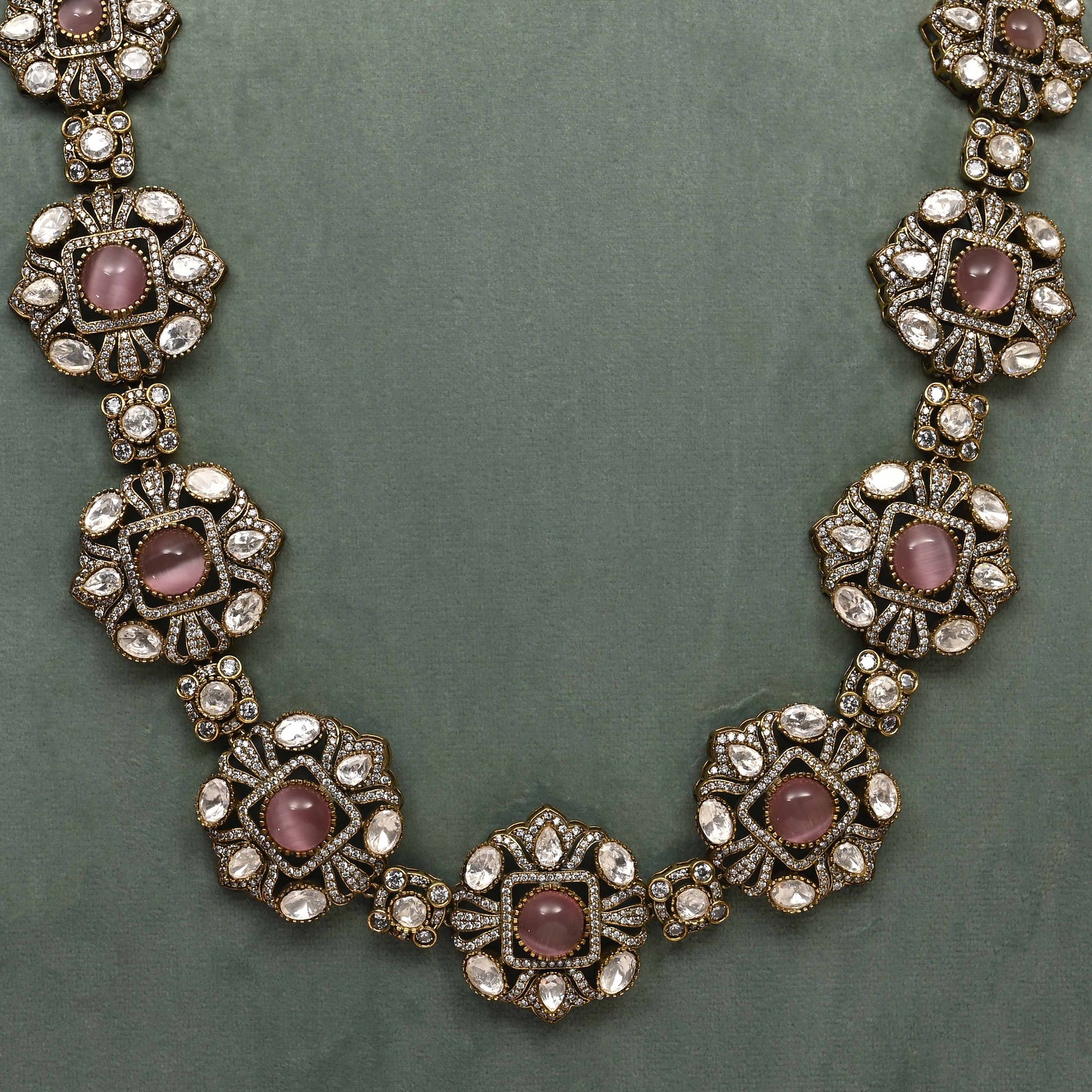 This Victorian Necklace Set showcases expert craftsmanship with a unique, one-of-a-kind design. Featuring real CZ and moissanite stones, it offers the brilliance and sparkle of genuine diamonds. Delicately accented with dangling pearls, this handcrafted piece combines timeless elegance with exceptional quality, making it a distinguished addition to any fine jewelry collection.