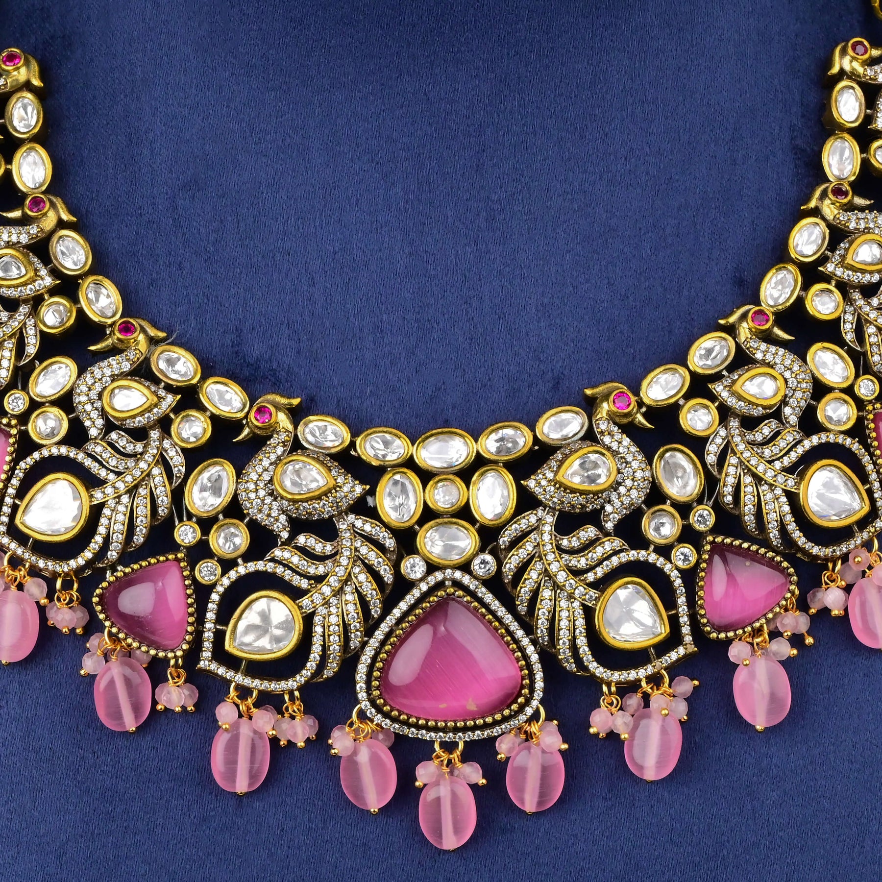 This Victorian necklace set showcases expert craftsmanship with a unique, one-of-a-kind design. Featuring real cubic zirconia and moissanite stones, it offers the brilliance and sparkle of genuine diamonds. Delicately accented with dangling pearls, this handcrafted piece combines timeless elegance with exceptional quality, perfect for those seeking a sophisticated and distinctive accessory.