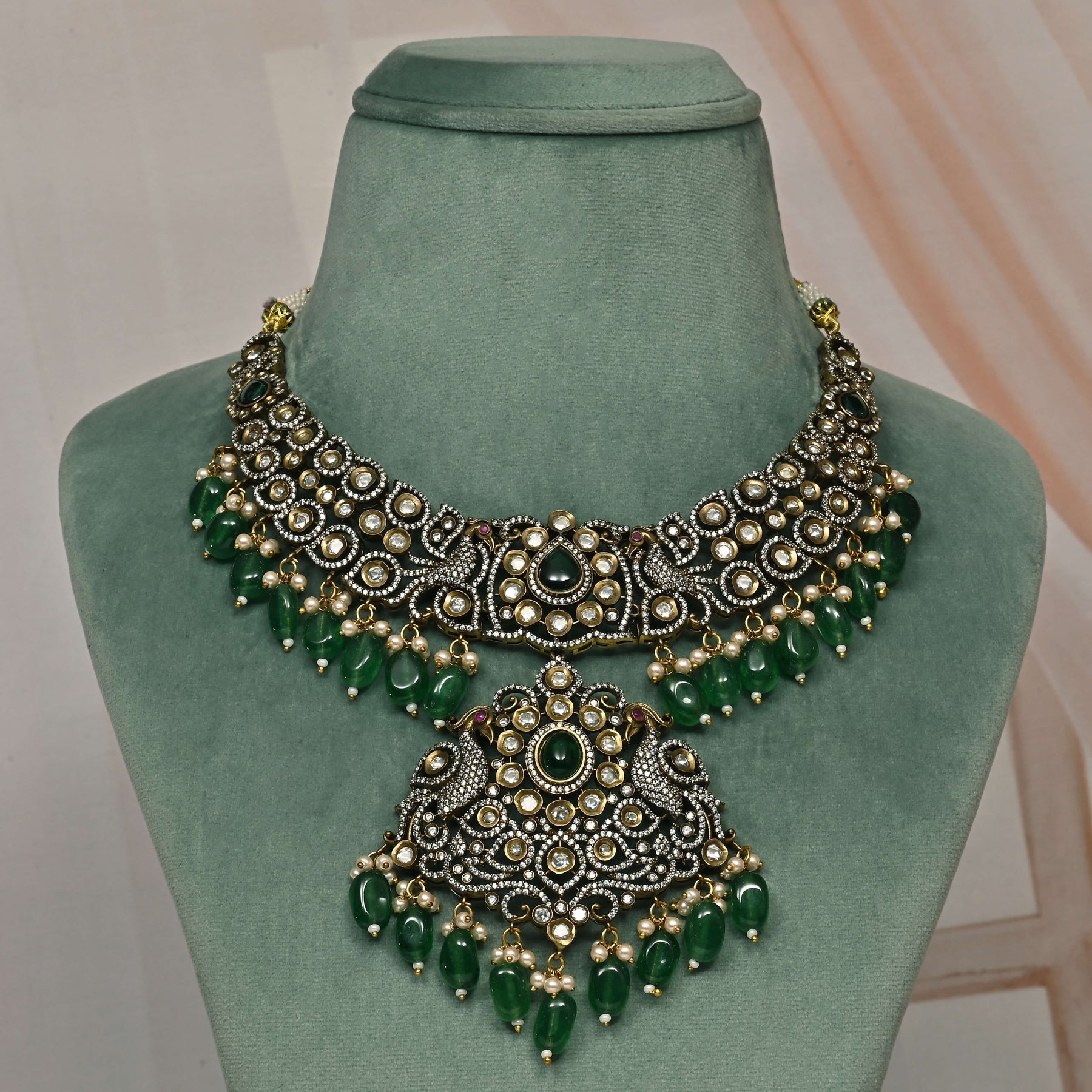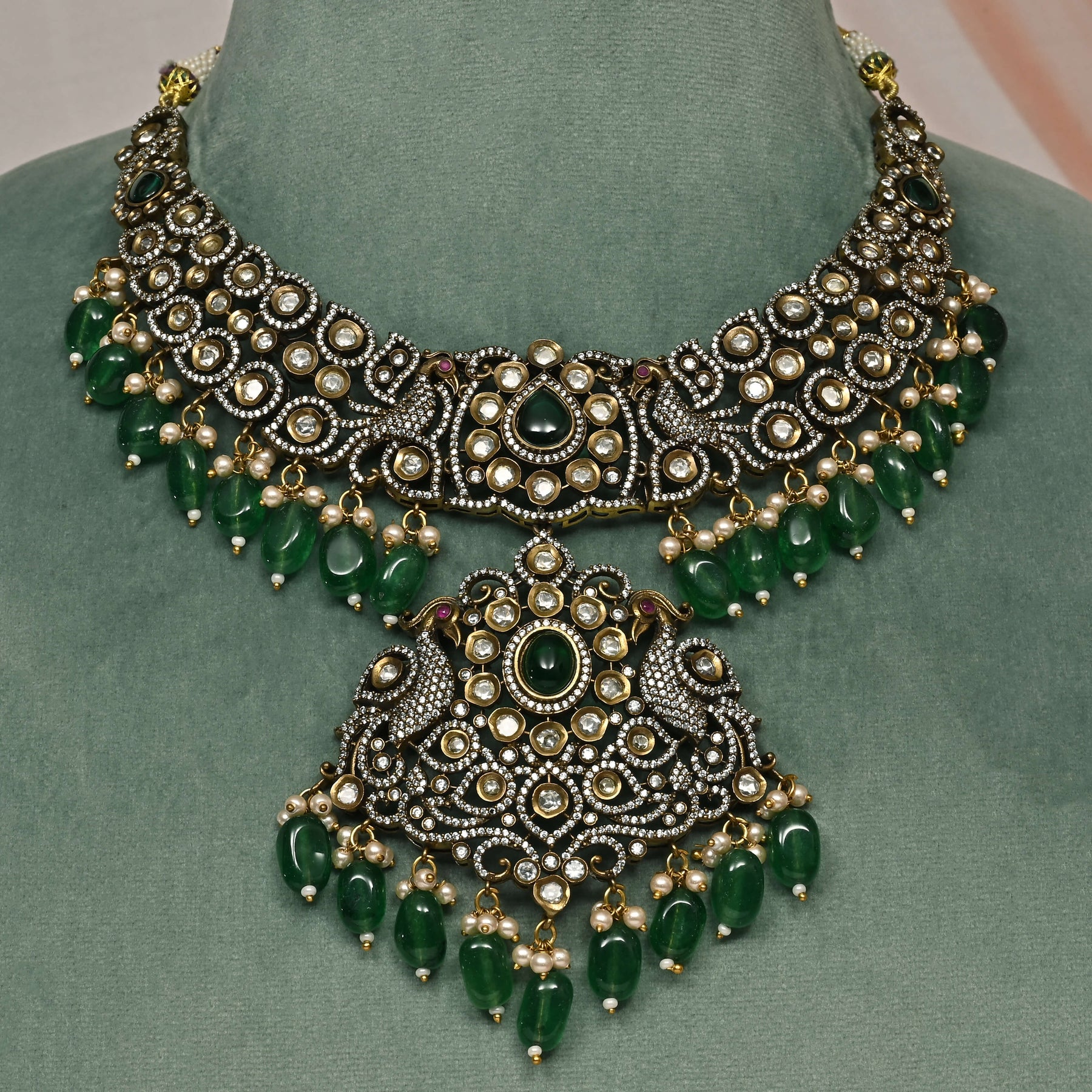 This Victorian necklace set showcases expert craftsmanship with its unique, one-of-a-kind design. Handcrafted to perfection, it features genuine CZ and moissanite stones that offer exceptional brilliance and durability. Ideal for those who appreciate timeless elegance combined with superior quality, this set adds a refined touch to any ensemble.