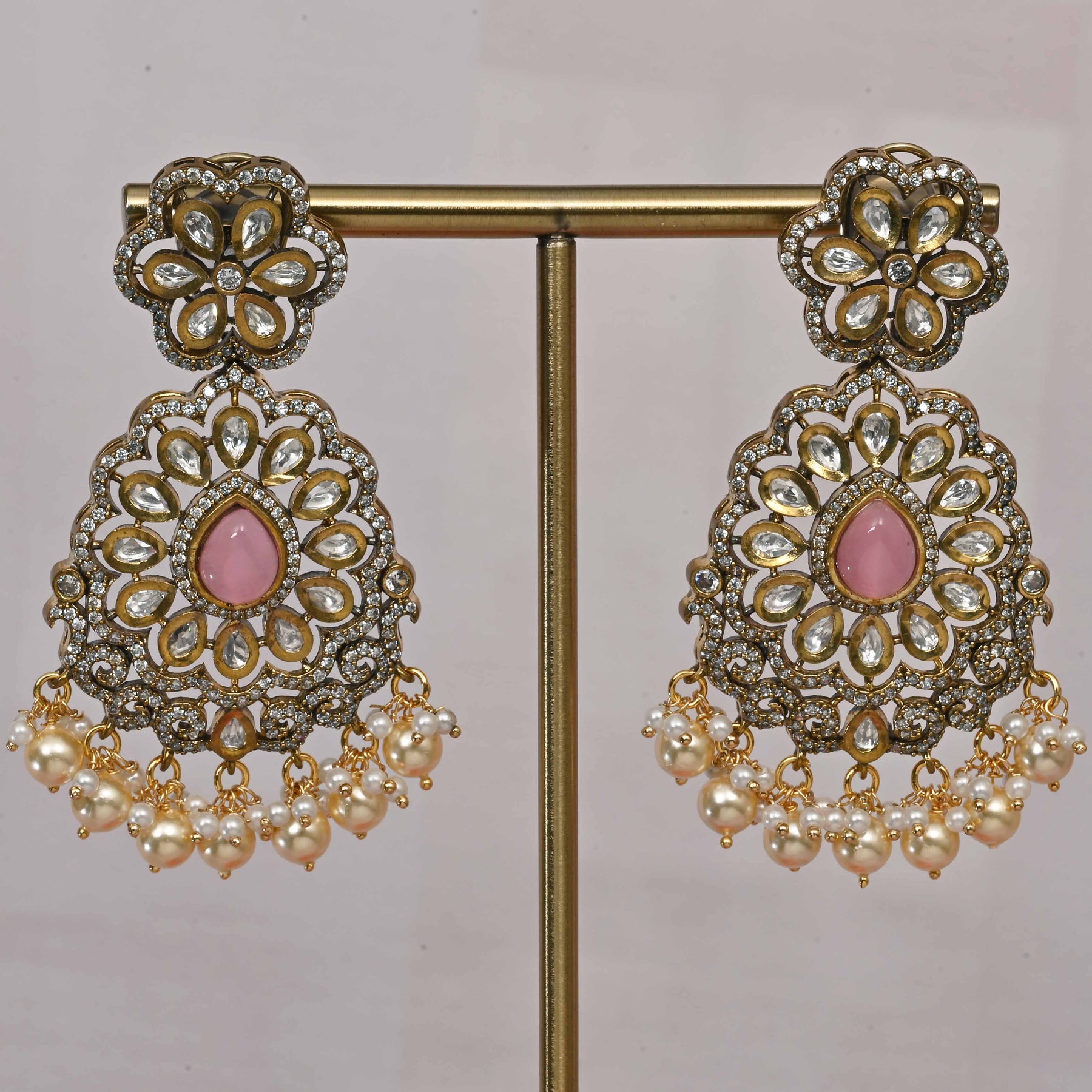This Victorian necklace set showcases expert craftsmanship with its unique, one-of-a-kind design. Featuring real CZ and moissanite stones, it offers the brilliance and sparkle of genuine diamonds. Delicately accented with dangling pearls, this handcrafted piece combines timeless elegance with exceptional quality, making it a stunning addition to any fine jewelry collection.