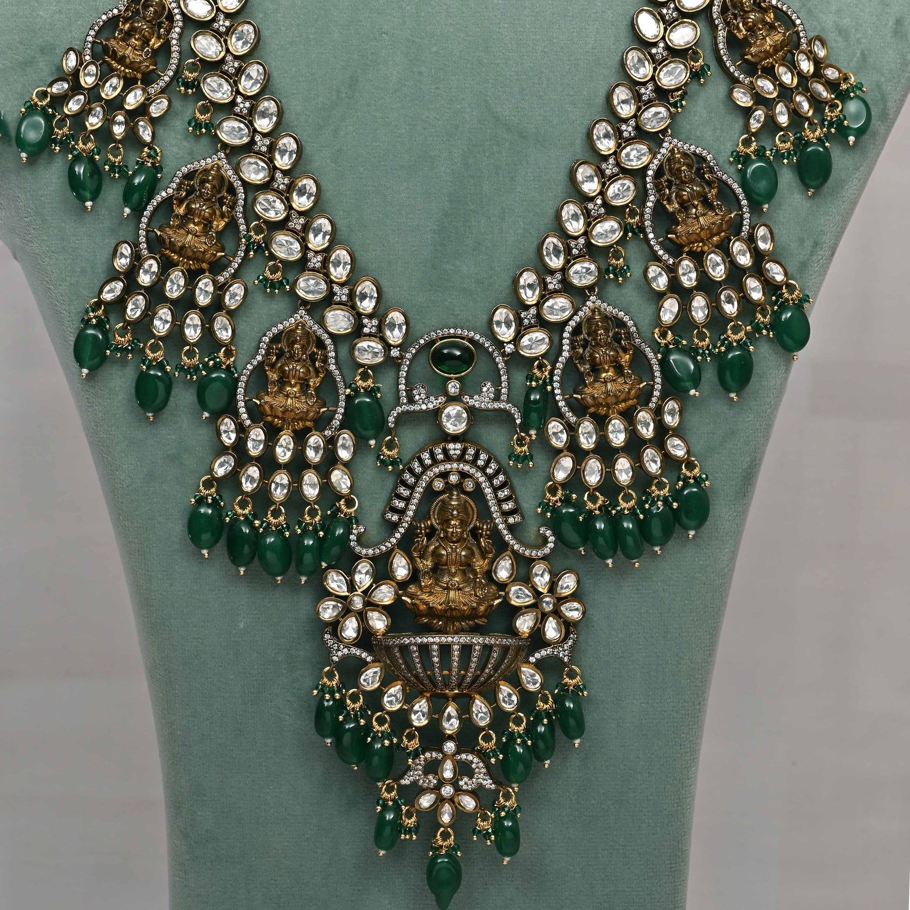 This Victorian Necklace Set showcases expert craftsmanship with a unique, one-of-a-kind design. Featuring real CZ and moissanite stones, it offers the brilliance and sparkle of genuine diamonds. Delicately accented with dangling pearls, this handcrafted piece combines timeless elegance with exceptional quality, making it a distinguished addition to any fine jewelry collection.