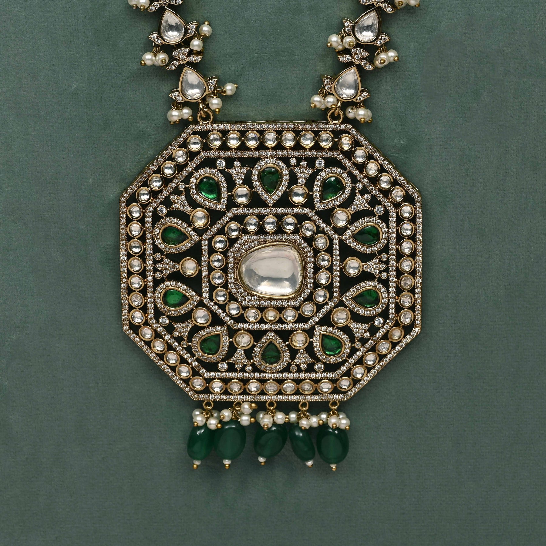 This Victorian Necklace Set showcases expert craftsmanship with its unique, one-of-a-kind design. Featuring real CZ and moissanite stones, it offers the brilliance and sparkle of genuine diamonds. Delicately accented with dangling pearls, this handcrafted piece captures the timeless elegance of the Victorian era, making it a distinguished addition to any fine jewelry collection.