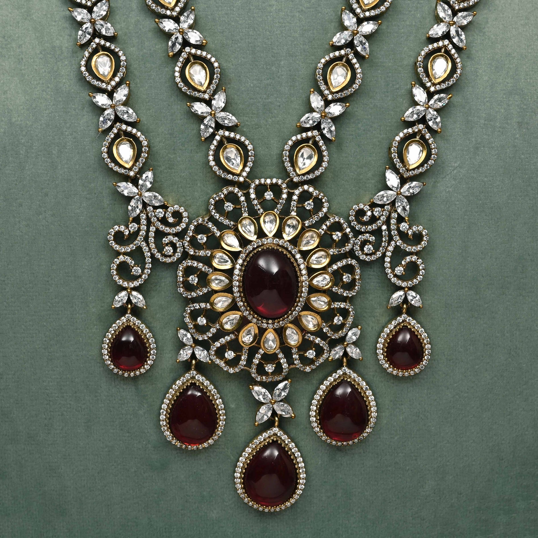 This Victorian Necklace Set showcases expert craftsmanship with a unique, one-of-a-kind design. Featuring real CZ and moissanite stones, it offers the brilliance and sparkle of genuine diamonds. Delicately accented with dangling pearls, this handcrafted piece combines timeless elegance with exceptional detail, making it a distinguished addition to any fine jewelry collection.