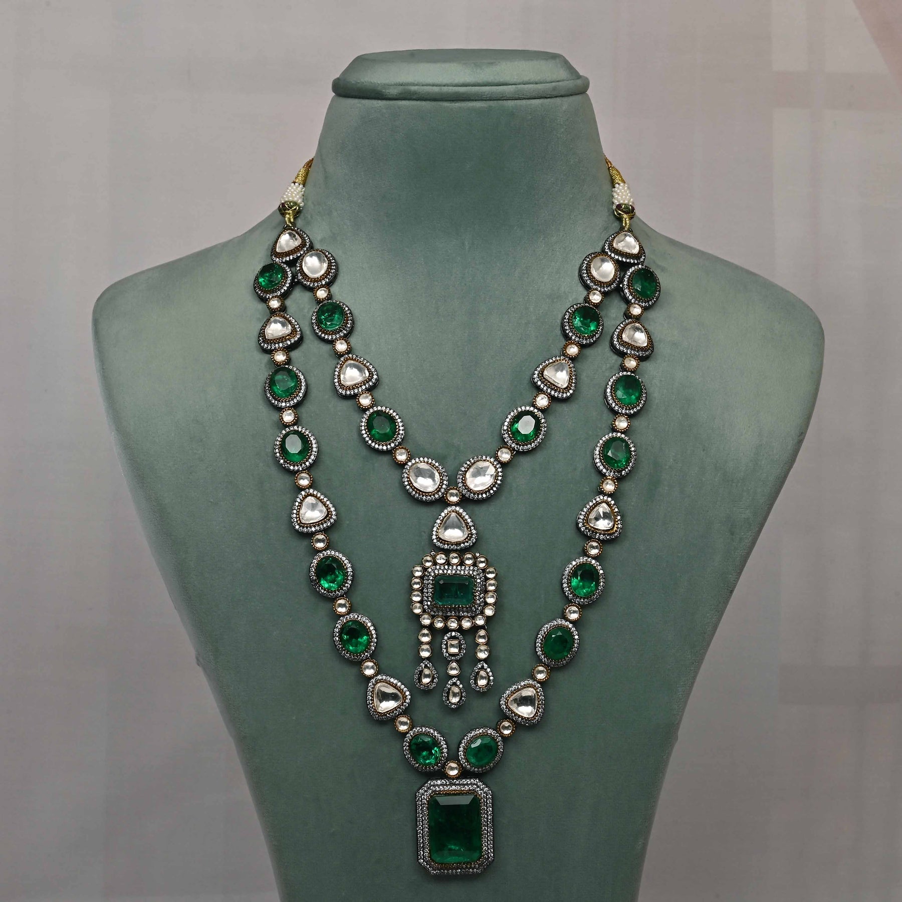 This Victorian necklace set showcases expert craftsmanship with a unique, one-of-a-kind design. Featuring real cubic zirconia and moissanite stones, it offers the brilliance and sparkle of genuine diamonds. Delicately accented with dangling pearls, this handcrafted piece combines timeless elegance with exceptional detail, making it a distinguished addition to any fine jewelry collection.