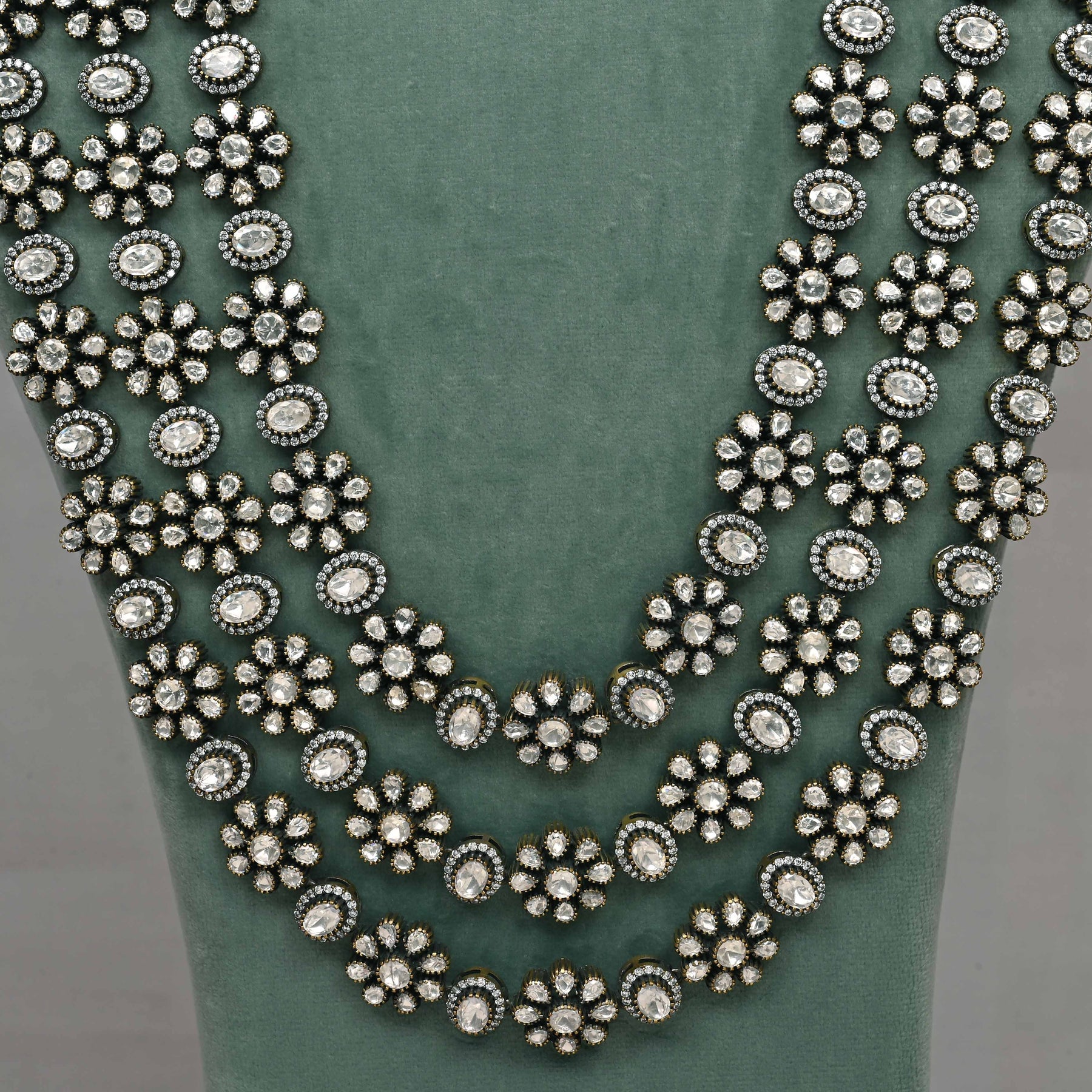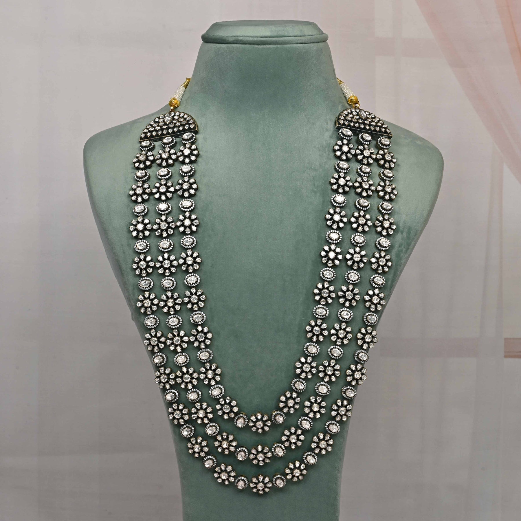 This Victorian necklace set showcases exquisite craftsmanship with a unique, one-of-a-kind design. Featuring real cubic zirconia and moissanite stones, it offers the brilliance and sparkle of genuine diamonds. Delicately accented with dangling pearls, this handcrafted piece combines timeless elegance with exceptional detail, making it a standout addition to any fine jewelry collection.