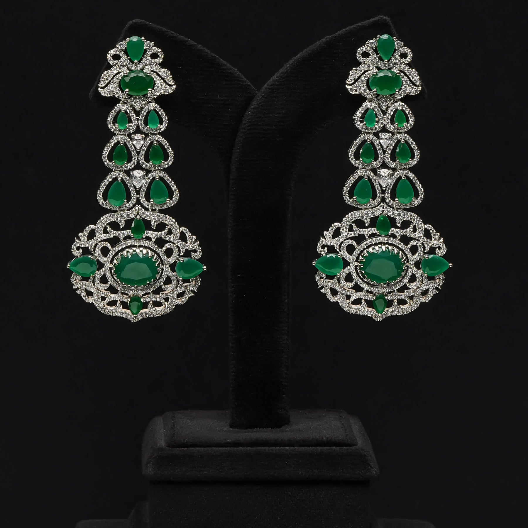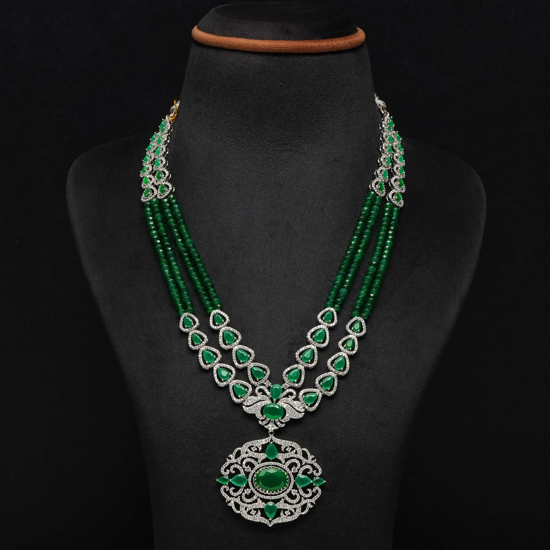 This exquisite beads long necklace features a white gold finish and is adorned with genuine cubic zirconia stones, showcasing intricate craftsmanship. Handcrafted to perfection, its unique design is complemented by matching earrings, making it a distinctive one-of-a-kind set that elevates any ensemble with elegance and sophistication.