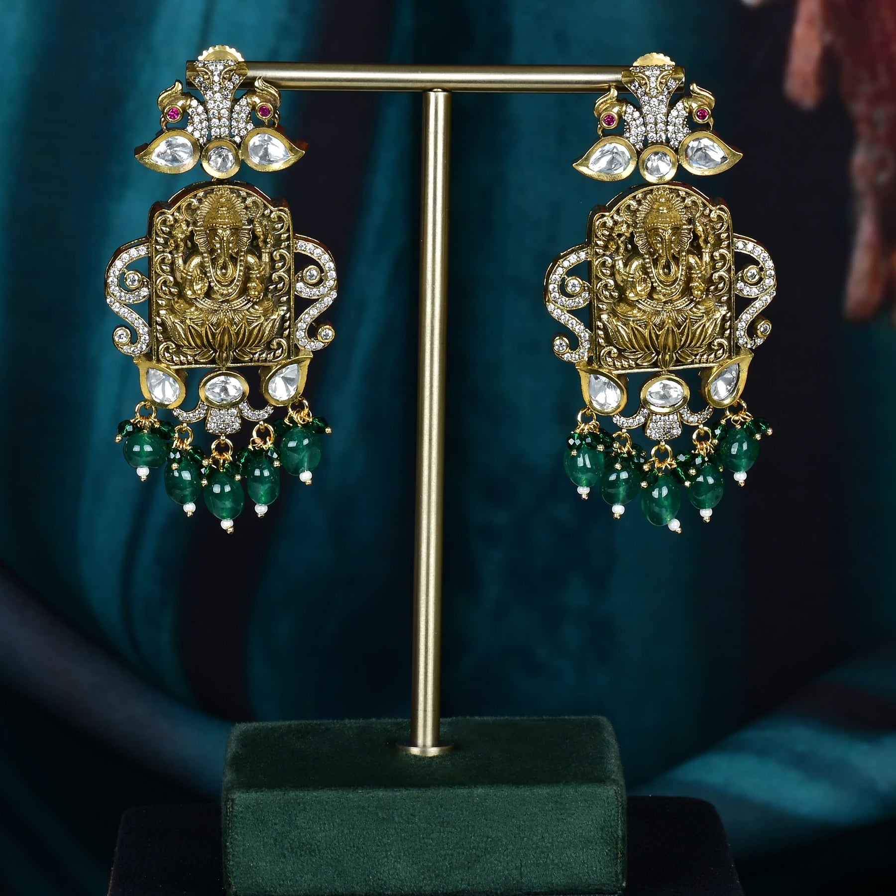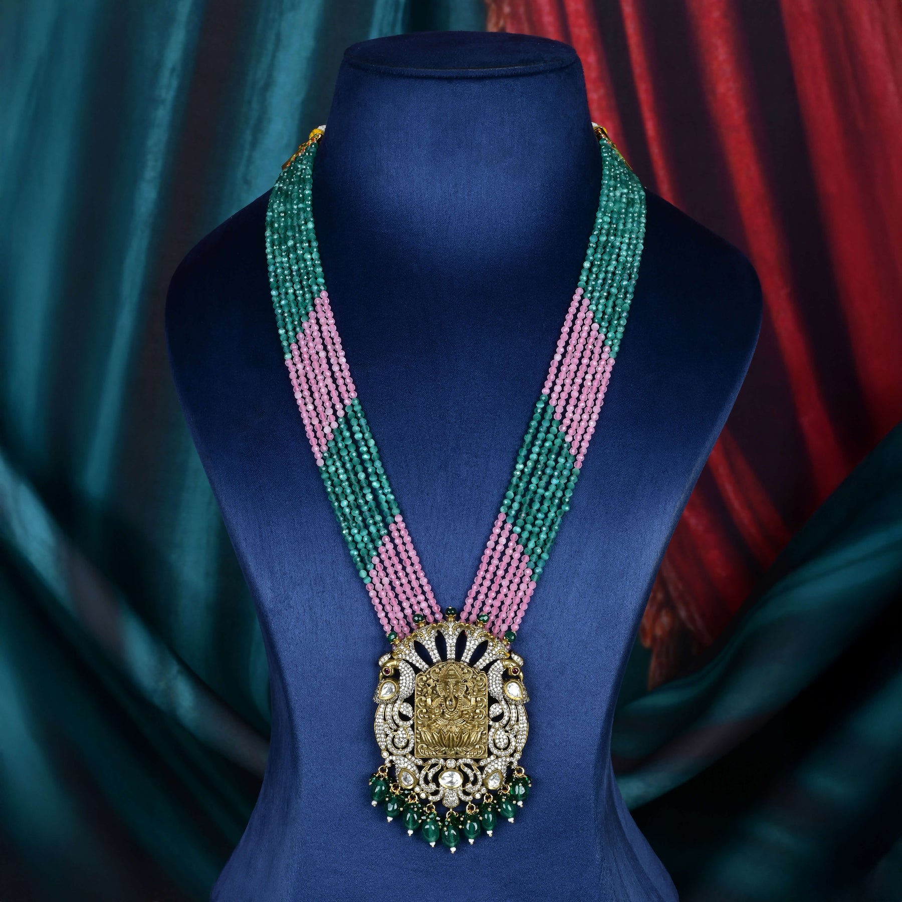 Elevate your collection with this expertly handcrafted Beads Victorian Necklace set, featuring genuine CZ and moissanite stones that offer exceptional brilliance and durability. The unique deity pendant adds a spiritual touch, making this one-of-a-kind design a timeless statement piece. Perfect for those who appreciate meticulous craftsmanship and distinctive elegance.