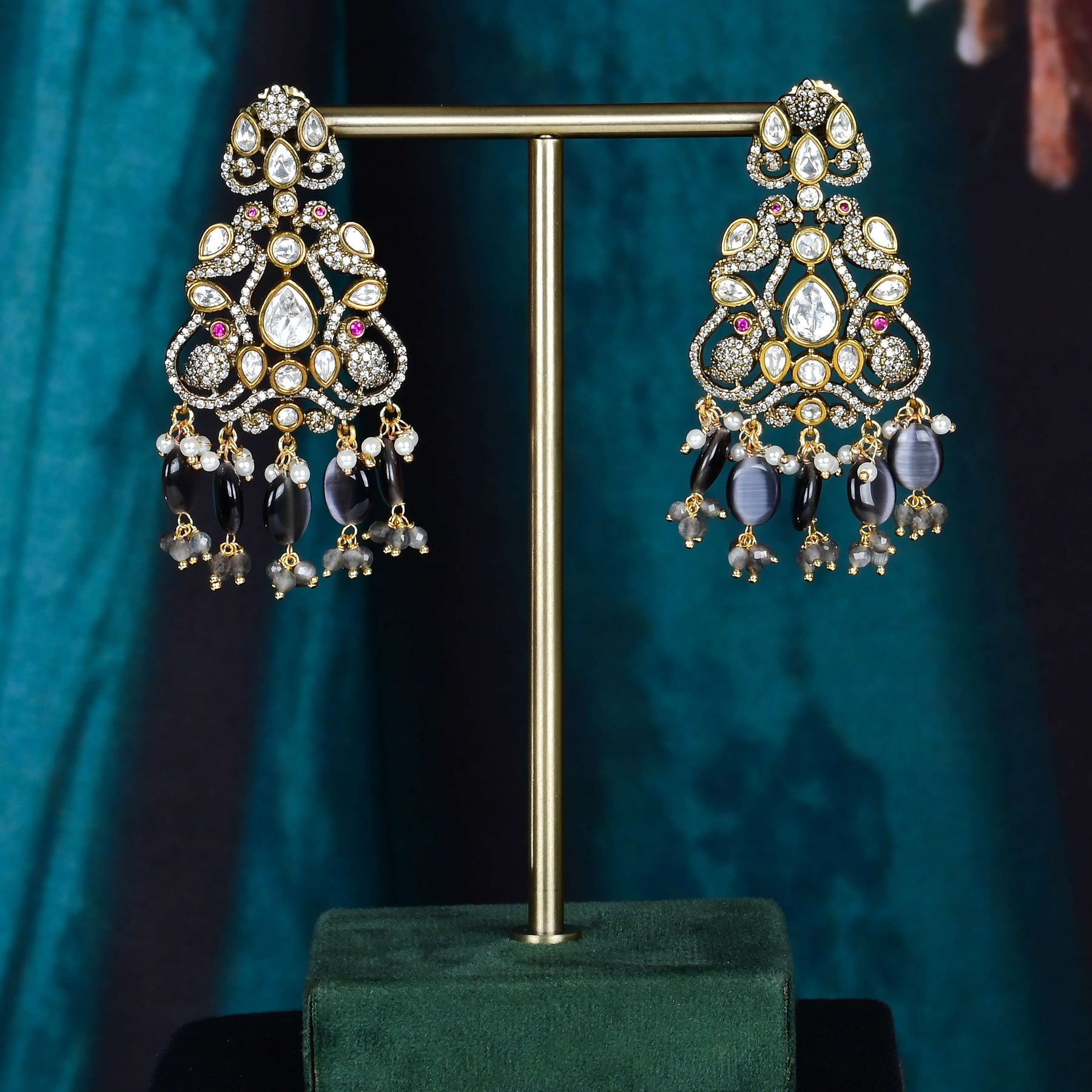 This handcrafted Beads Victorian Necklace set features real CZ and moissanite stones, offering the brilliance and sparkle of genuine diamonds. Its unique deity locket design reflects exquisite craftsmanship, making it a one-of-a-kind piece that combines traditional elegance with timeless beauty. Perfect for those who appreciate expert artistry and distinctive jewelry.