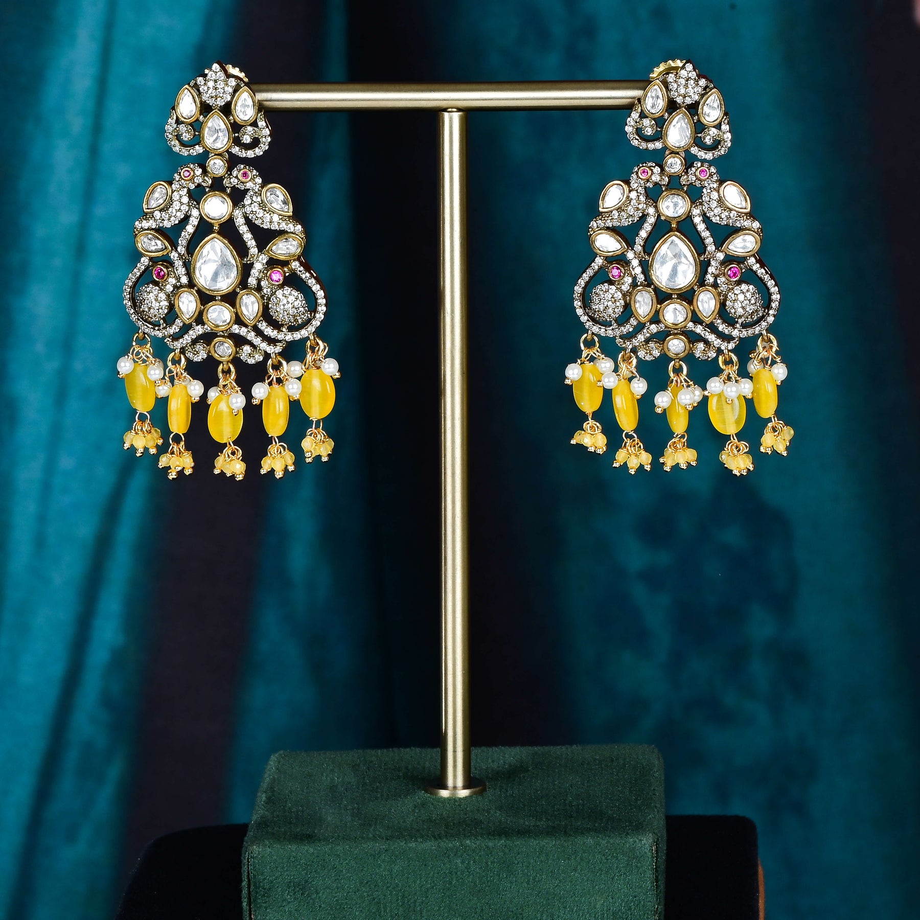 Experience timeless elegance with this Beads Victorian Necklace set, meticulously handcrafted to showcase real CZ and moissanite stones that mimic the brilliance of genuine diamonds. Featuring a unique deity locket, this one-of-a-kind design blends classic Victorian charm with expert craftsmanship, making it a distinguished addition to any fine jewellery collection.