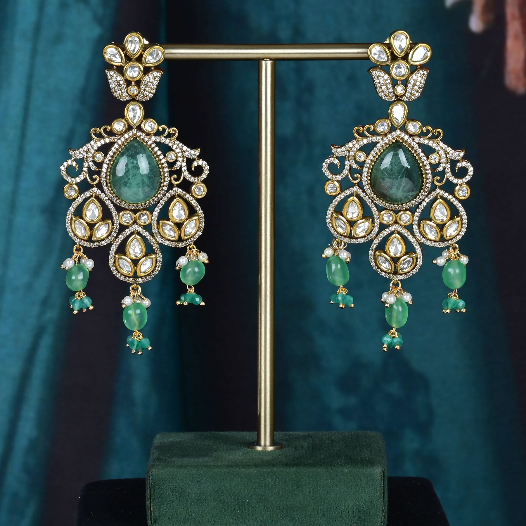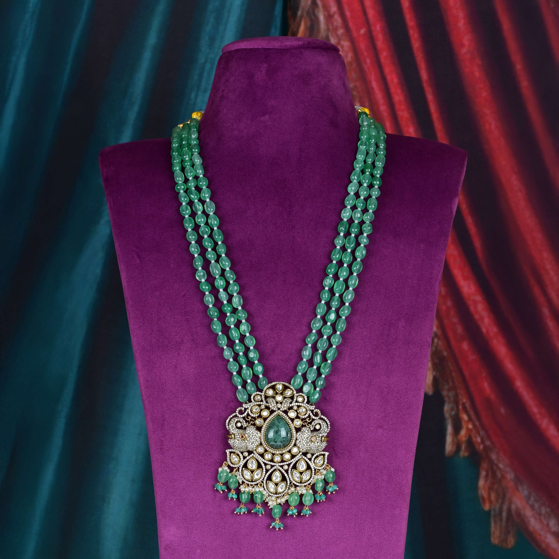 This Beads Victorian Necklace set showcases expert craftsmanship with its unique, one-of-a-kind design. Featuring real cubic zirconia and moissanite stones, it offers the brilliance and sparkle of genuine diamonds. Handcrafted with precision, this necklace set combines timeless Victorian elegance with modern durability, making it a distinguished addition to any fine jewelry collection.