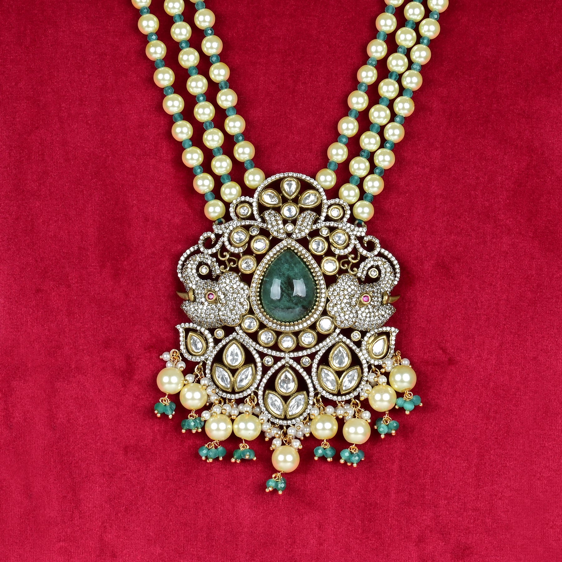 This Beads Victorian Necklace set showcases expert craftsmanship with its unique, one-of-a-kind design. Featuring real cubic zirconia and moissanite stones, it offers the brilliance and sparkle of genuine diamonds. Handcrafted with precision, this necklace set combines timeless Victorian elegance with modern durability, making it a distinguished addition to any fine jewelry collection.