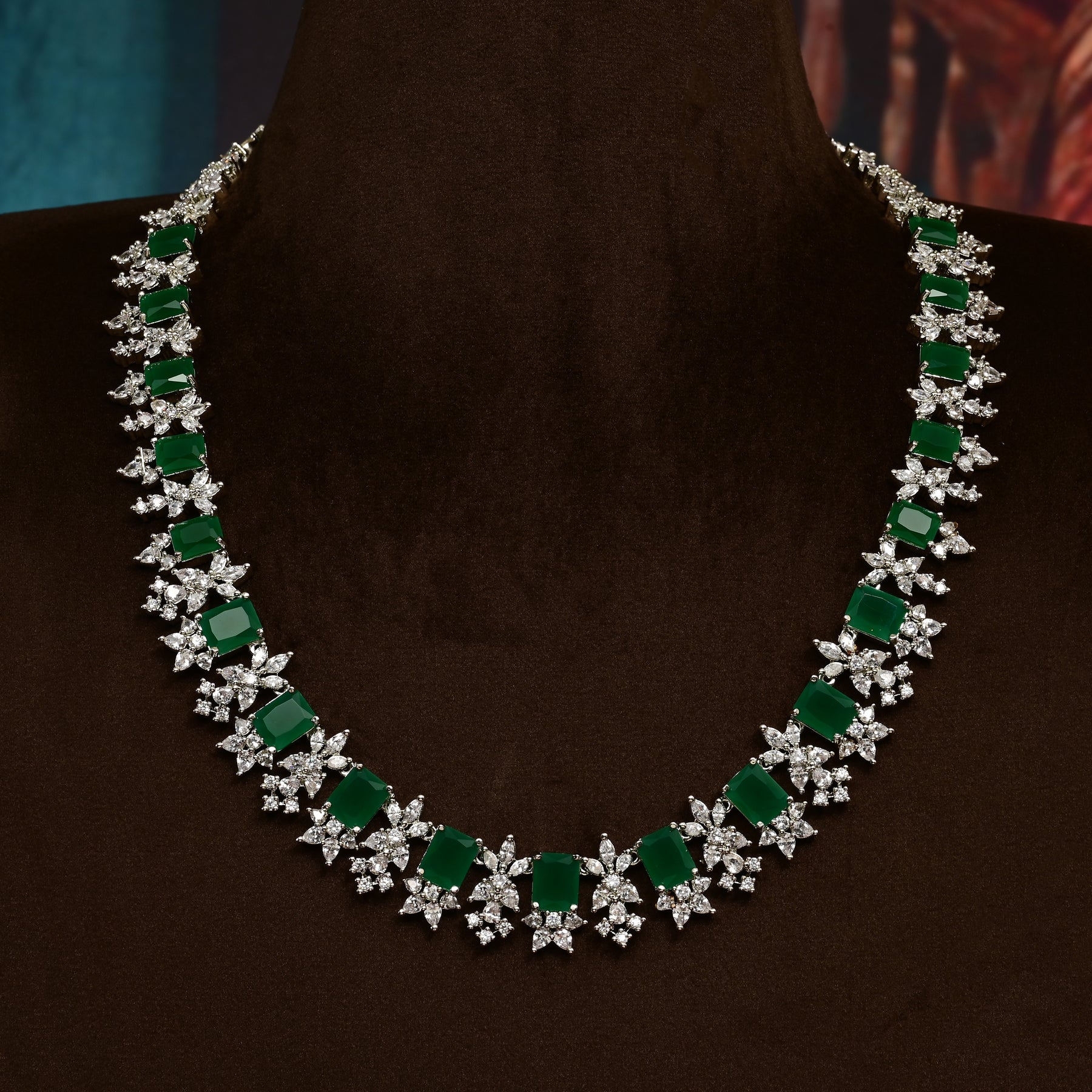 Elevate your jewelry collection with our CZ Emerald Necklace Set. This set features stunning semi precious emerald stones and real CZ stones, all hand crafted in a white gold finish. With its exclusive design, this necklace set is the perfect addition to any formal or special occasion outfit.