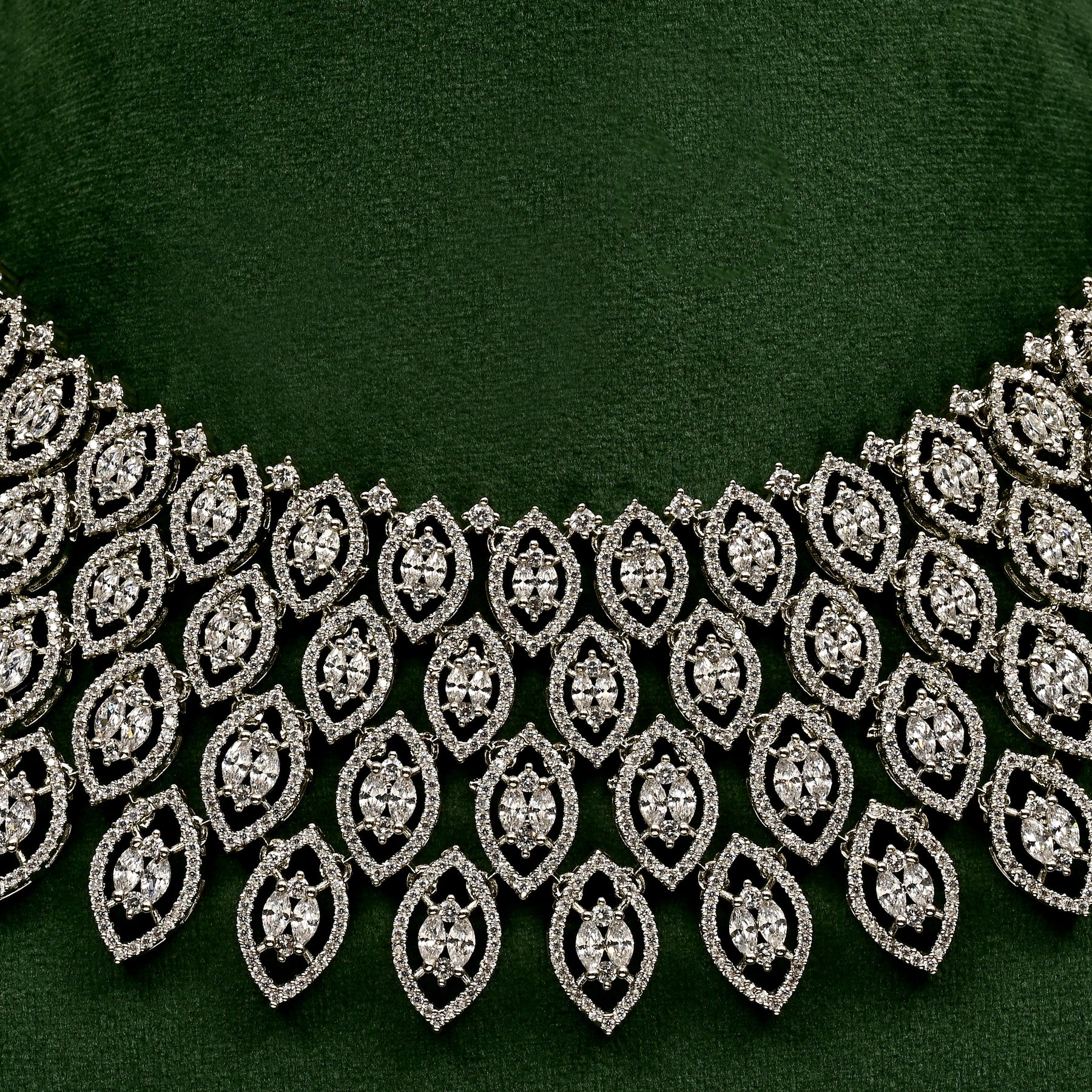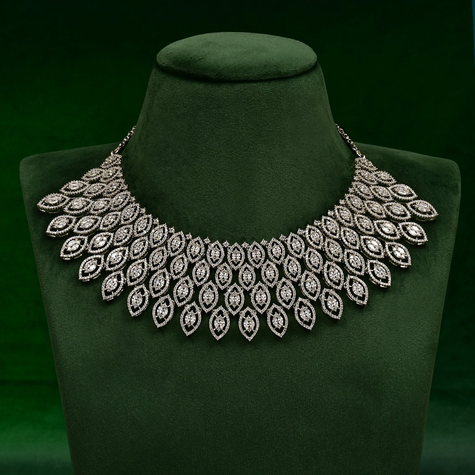 This hand-crafted CZ necklace set boasts real CZ stones with a diamond-like shine in a beautiful white gold finish. With its one-of-a-kind exclusive design, this necklace set is the epitome of elegance and luxury. Elevate your style with this stunning accessory.
